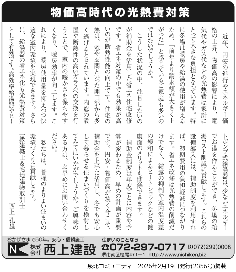 泉北コミュニティーにて、毎月第3木曜日に連載中のコラムです。